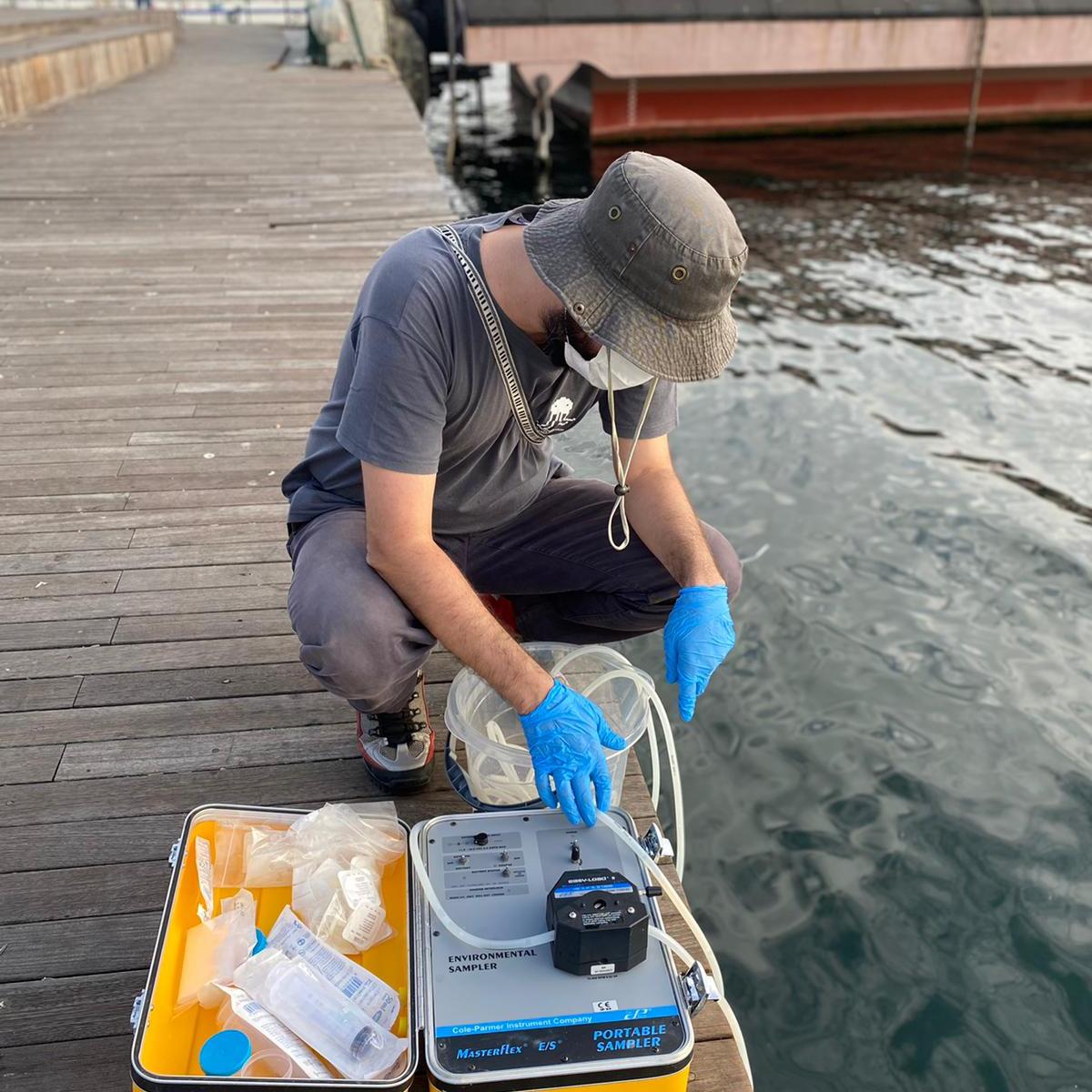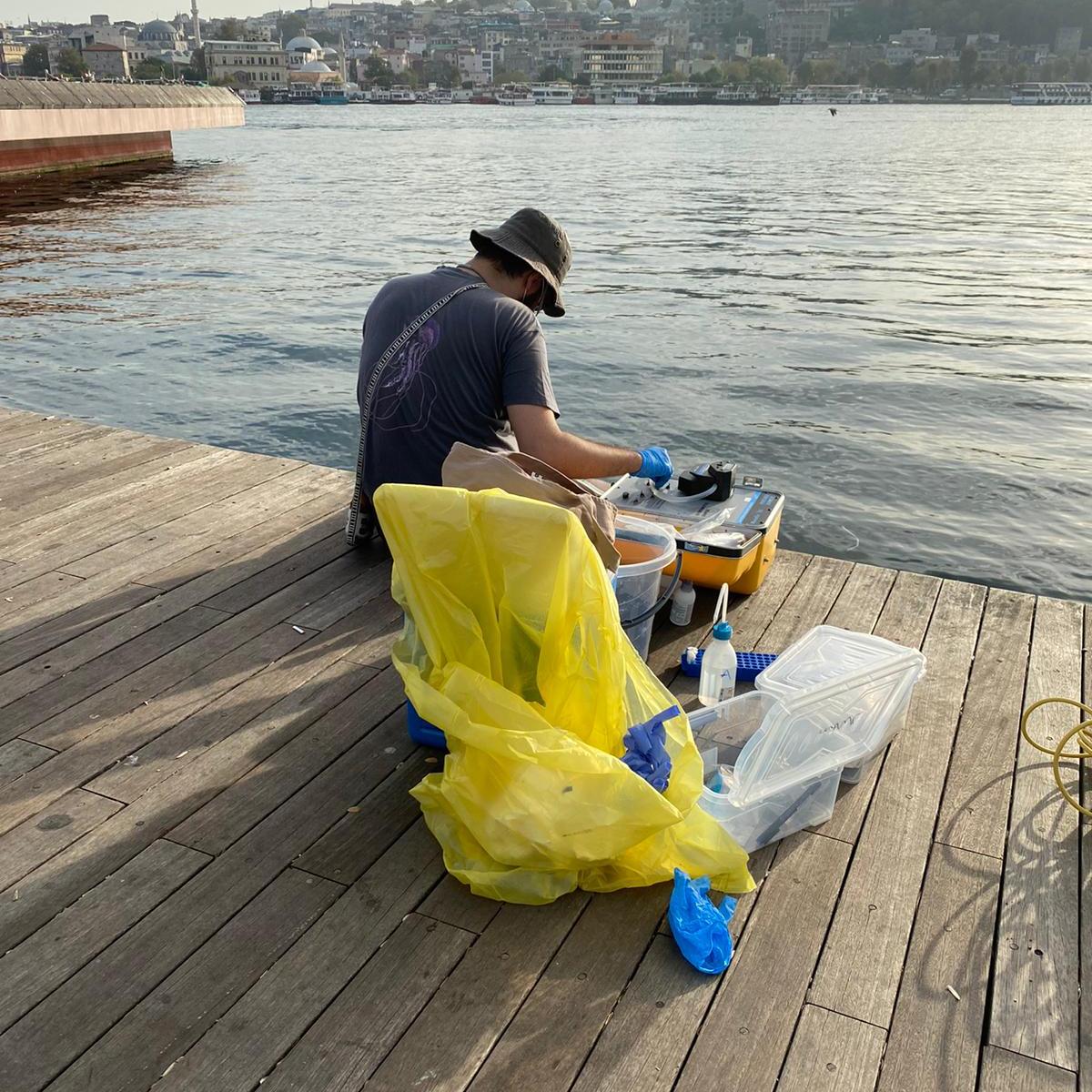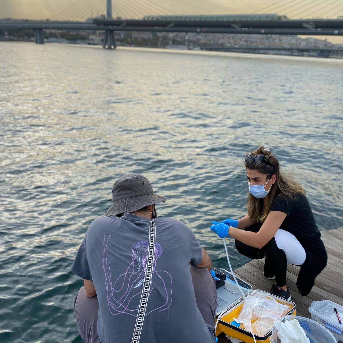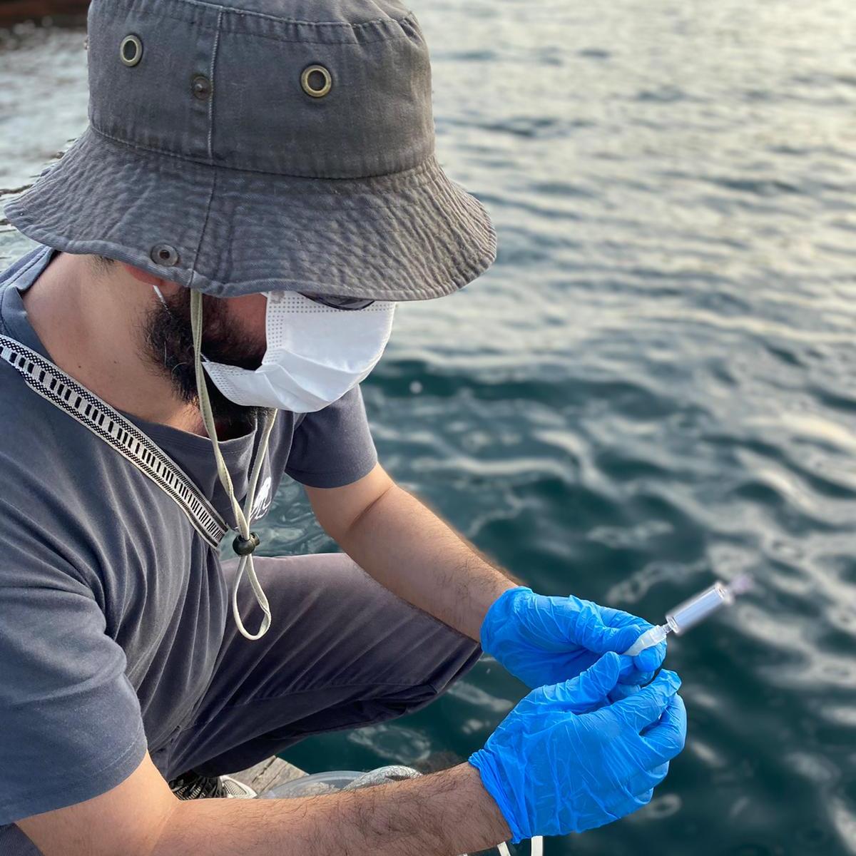 Sahada çok küçük por açıklıklarına sahip filtreler (Sterivex tipi silindir veya disk şeklinde -steril-) kullanarak suyu filtreliyoruz (ilgili bölgeyi temsilen 3 replika ve negatif örnek). Su kütlesine dair fiziksel veriyi (pH, sıcaklık, çözünmüş oksijen, tuzluluk,…) elde etmek için deniz biyolojisi çalışmalarında sıklılkla kullanılan çeşitli ölçüm cihazları kullanıyoruz. Bu süreç (örnekleme, sefer) biz bilim insanları için yaya olarak gerçekleşebileceği gibi söz gelimi bir araştırma gemisinde daha büyük bir takımın (gemi personeli ve diğer bilim insanlarıyla) koordine çalışmasıyla da gerçekleşebilir. Kimi zaman suyun sadece 1 metre altından el probu multiparametre yardımıyla kimi zaman araştırma gemimizde 2000 metreye kadar vinç operatörü yardımıyla Rozet sistemini gönderip gerçek zamanlı fizikel veri elde edebildiğimiz çalışmalar sürdürüyor, araştırmacı olarak görev alıyoruz. Çalışmalar öncesinde çalışacağımız alanlar ile ilgili devletin ilgili kurumlarından o alanda ne kadar süre ile hangi araştırmacılar olarak çalışacağımızla ilgili izin belgeleri alıyor çalışmamızın gidişat sürecinde bu birimlerle iletişim hâlinde kalarak ilgili güncellemeleri raporlar hâlinde kendileri ile paylaşıyoruz.