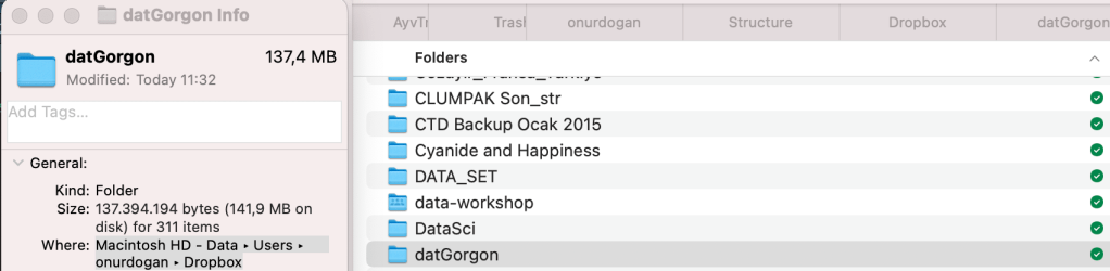 Where: yazan yerde copy as pathname ‘i kopyaladığımda ilgili klasörün yolu /Users/onurdogan/Dropbox olarak kopyalanmış olacak.